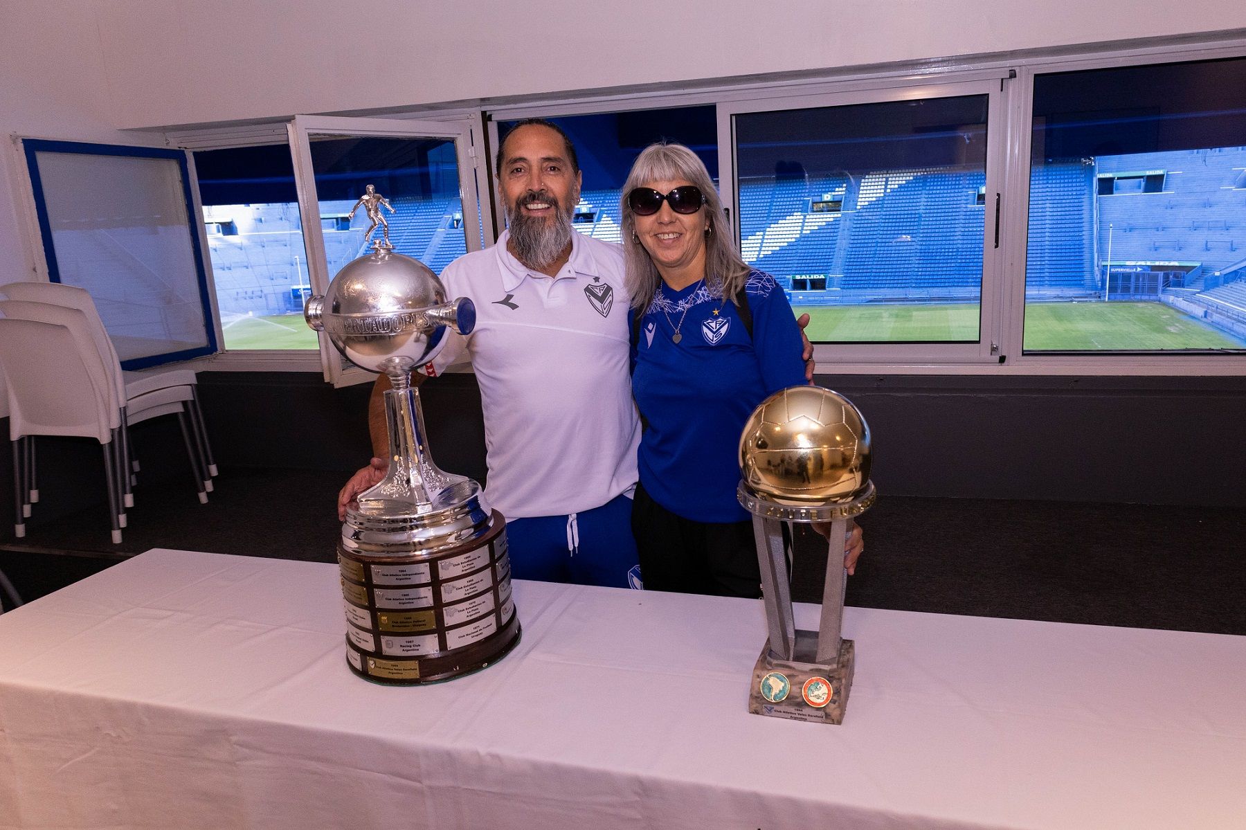 Las parejas también disfrutaron de retratarse con dos de las copas más emblemáticas en la historia del Fortín: Libertadores e Intercontinental (Foto: Joaquín Ozán)
